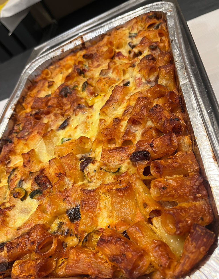 Packed in foil oven trays we precook this package for you to reheat in the oven. We include plates, napkins and sauces.