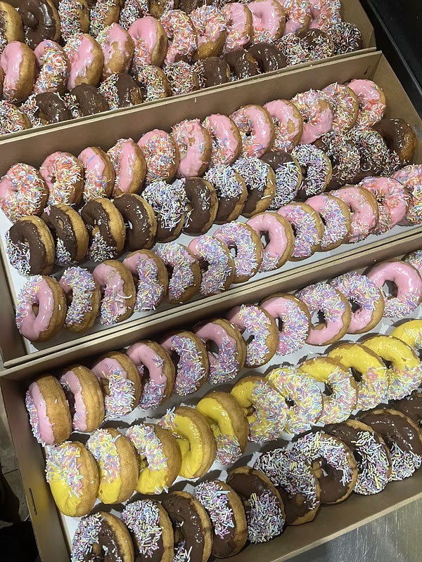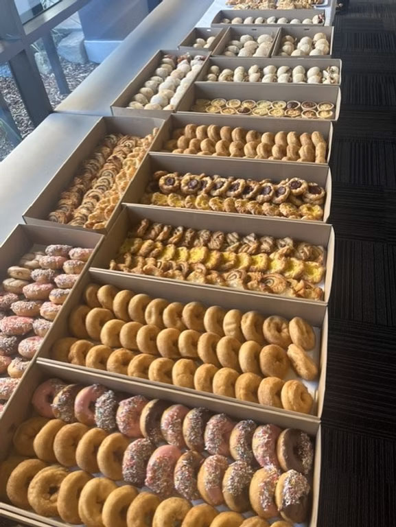 - 10 Large Mixed Gourmet Donuts Cut into Halves – $40.00