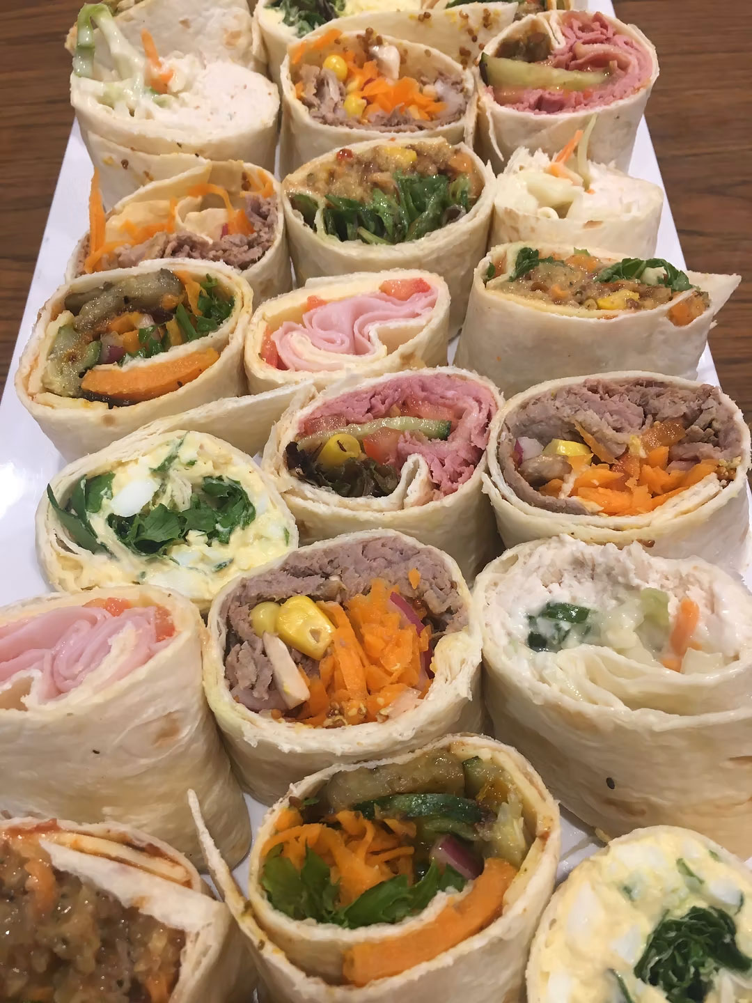 - 20 Mini Crepes Wrapped with Savoury Items – $60.00