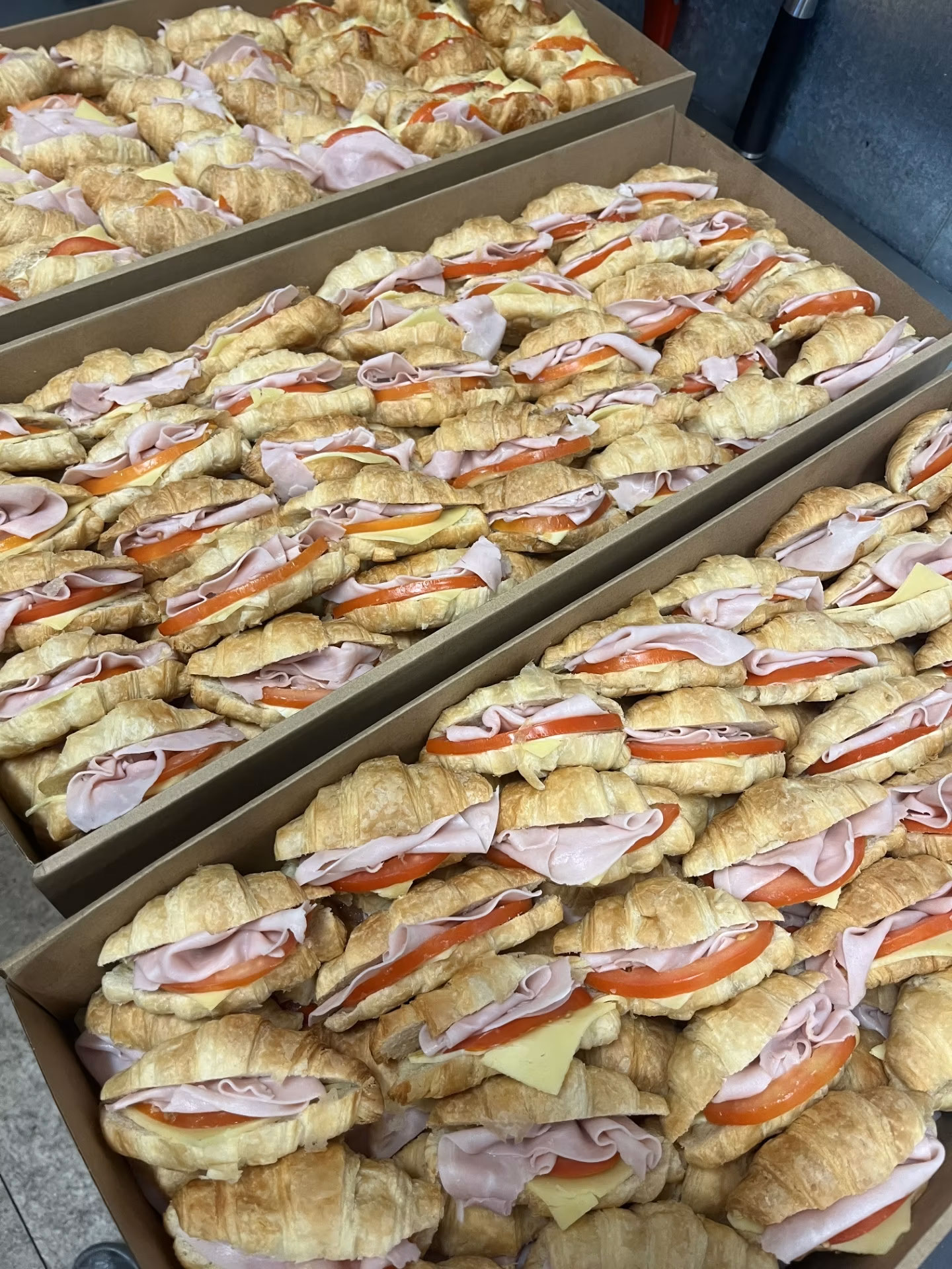 - 10 Freshly Baked Large Croissants with Ham, Cheese & Tomato – $50.00